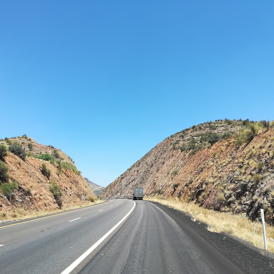 La stradona si rivela meno trafficata del previsto. Certo non mancano camioni enormi e pick-up giganti (qui non esiste il concetto di utilitaria), ma la corsia di emergenza, la cossiddetta shoulder, è ampia e sicura. Si pedala senza problemi, non fosse che è tutto un cimitero di copertoni di camion esplosi e sfilacciati. Fin dai primi metri capisco che il rischio foratura è altissimo, e le previsioni funeste, ahimè, si avvereranno tutte.