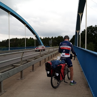 Una volta passato il confine, che è spalancato e libero al passaggio come piace a me, ci lanciamo di ciclabile in ciclabile verso nord, alla grande laguna che raccoglie le acque dell'Oder (e di molti altri fiumi minori) e le consegna al Baltico, dopo aver loro aggiunto una goccia di oro e una di sangue. Muoviamo verso Stettino, lungo stradoni assai trafficati, ma tutti con la loro brava pistina ciclabile a lato. Siamo ancora vicini alla Germania e questo primo impatto è ben diverso dai miei ultimi ricordi della Polonia, al confine con la Bielorussia, nella foresta di Bialowieza, sotto la pioggia, nella sabbia fangosa, e a bussar alla porta di vecchie tartare incartapecorite e gentili.