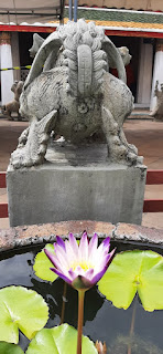 Il cortile è cinto da un chiostro con un boddho di Buddha, molti dei quali velati di arancione. Fa impressione e mi ricorda la scena iconica del film di animazione Il gobbo di Notre Dame, quando Frollo rivolge una preghiera alla Vergine (https://www.youtube.com/watch?v=sLIQahUUlPE). So che non c'entra nulla, ma nel mio cervellino serbellino frulla di tutto, e spesso male.