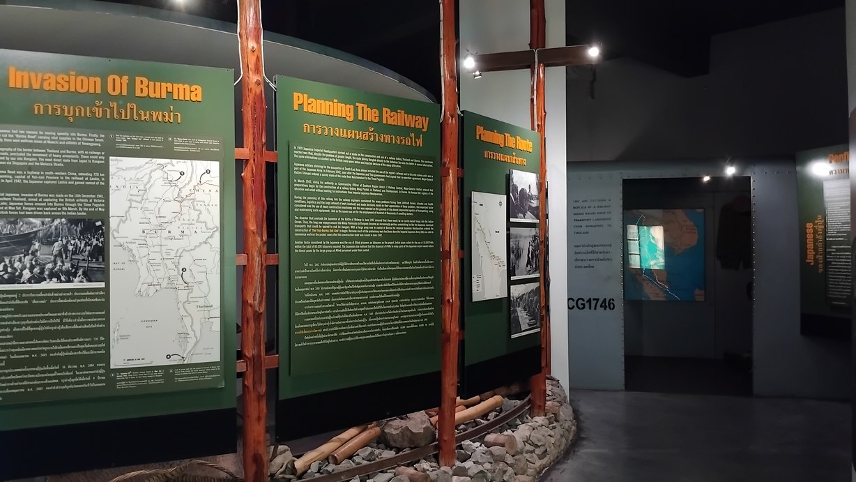 La nostra prima tappa di visita è un museo, il Thailand-Burma Railway Centre. L'esposizione, ben curata e immersiva, spiega come i POW e i lavoratori coatti venissero trasportati qui su carri merci, stipati e roventi (un viaggio di 4 giorni), per poi essere portati nella giungla con marce forzate a lavorare in condizioni terribili. Si moriva per malnutrizione, pessime condizioni igieniche, malattie (colera, malaria e dissenteria) e incidenti, o tutte e tre le cose insieme, sommate alla brutalità e alla ferocia dei giapponesi e delle loro barbare punizioni ad ogni minima infrazione delle regole. Infatti questa ferrovia, che pure è una straordinaria opera di ingegneria per le caratteristiche del territorio, si basò tutta sul lavoro manuale, con attrezzi rudimentali e la sola dinamite come ausilio "tecnologico". Costò la vita a 12.000 prigionieri di guerra (inglesi, australiani, olandesi, statunitensi) e a 90.000 asiatici (malesi, cinesi e indiani su tutti). Molti thailandesi rischiarono la vita per aiutare in qualche modo i detenuti, pur senza poter fare molto. Il museo illustra bene il costo in termini di vite umane, la follia della guerra e la necessità di ricordare le storie dei singoli, e dar valore a quelli che non sono solo numeri e statistica.