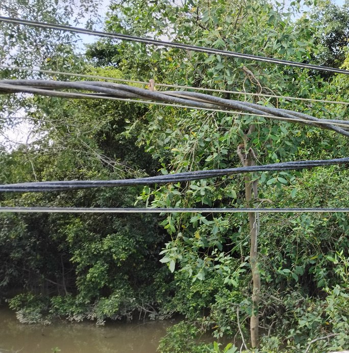 Dopo gli ultimi tratti sterrati e ben fangosi, incredibilmente ci compare davanti l'inatteso molo di imbarco. E c'è pure un ampio parcheggio gremito di motorini e una tettoia con diversi passeggeri in attesa. Davvero non ci speravo più, dopo 10km in mezzo al nulla, senza che anima viva, se non con la coda prensile e qualche cromosoma di differenza da noi, transitasse. Temevo di dover tornare indietro sullo stradone e trovare un'alternativa. E invece! Appena giunti, vediamo il barchino di legno avvicinarsi, carico di passeggeri e motorini, quasi tutti contadini. Come pure quelli che aspettano insieme a noi, molti vestiti da lavoro e con roncole e spruzzatori sulla schiena.